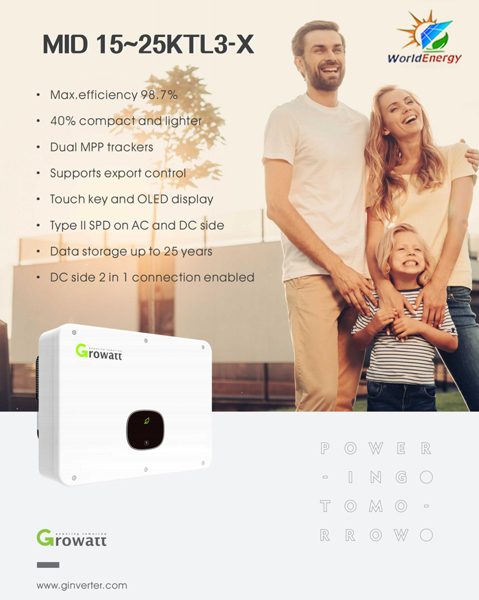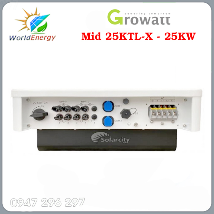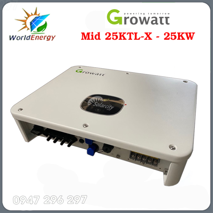 - Biến tần growatt 25kw mẫu mới Sử dụng công nghệ tiên tiến MPPT giúp dò điểm công suất tùy theo cường độ ánh sáng mặt trời.